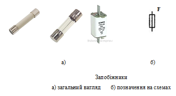 Запобіжник (предохранитель)– комутаційний електричний апарат, призначений для автоматичного вимикання електричного кола, що захищається.
